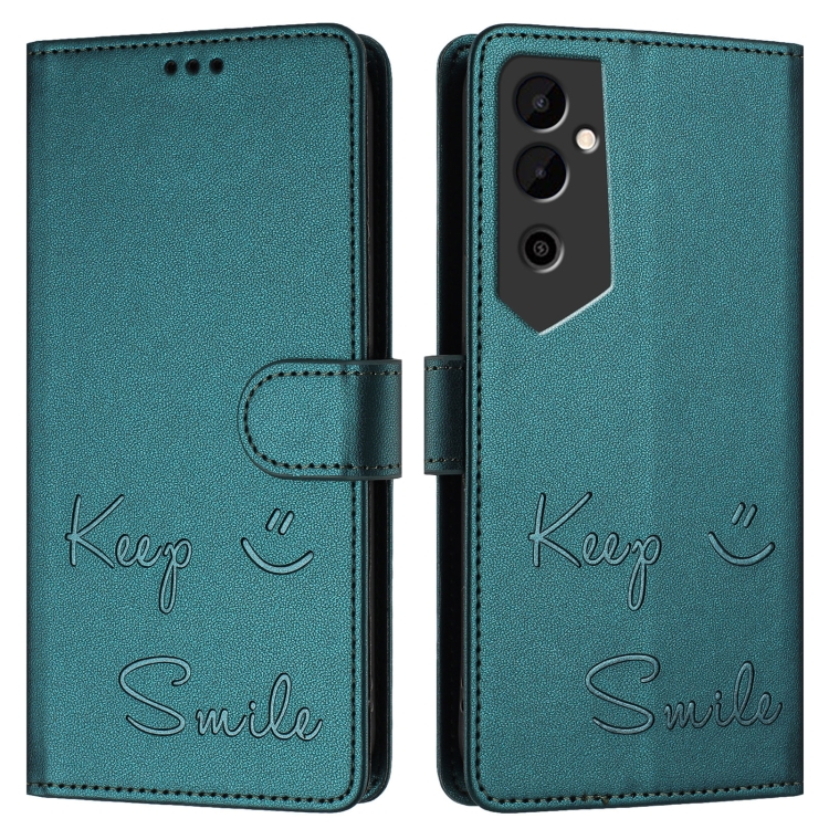 Funda de Cuero Rfid con Relieve Sonriente para Tecno Pova Neo 2 (Verde Pavo Real)