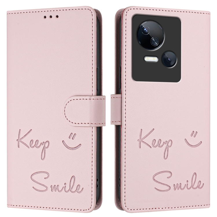 Funda Cuero Rfid Relieve Sonriente para Tecno Spark 10 5G (Rosa)