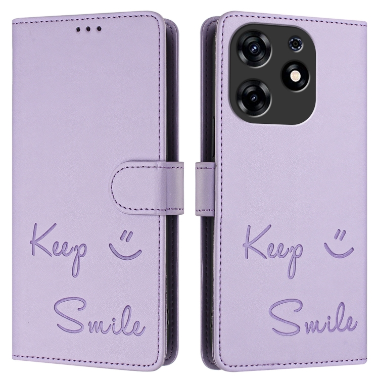 Funda de Cuero Rfid con Relieve Sonriente para Tecno Spark 10 Pro (Morado Claro)