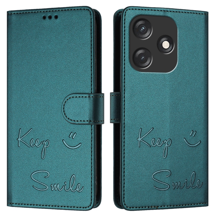 Funda de Cuero Rfid con Relieve Sonriente para Tecno Spark 10C (Verde Pavo Real)
