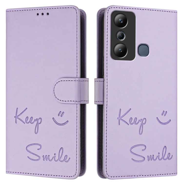 Funda de Cuero Rfid con Relieve Sonriente para Teléfono Infinix Hot 20I X665E (Morado Claro)