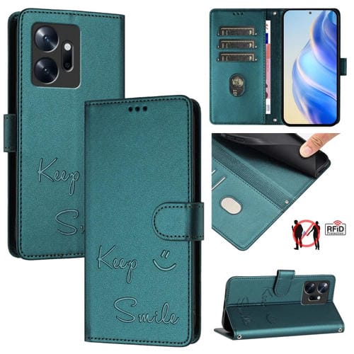 Funda de Cuero Rfid para Teléfono Infinix Zero 20 con Relieve Sonriente (Verde Pavo Real)