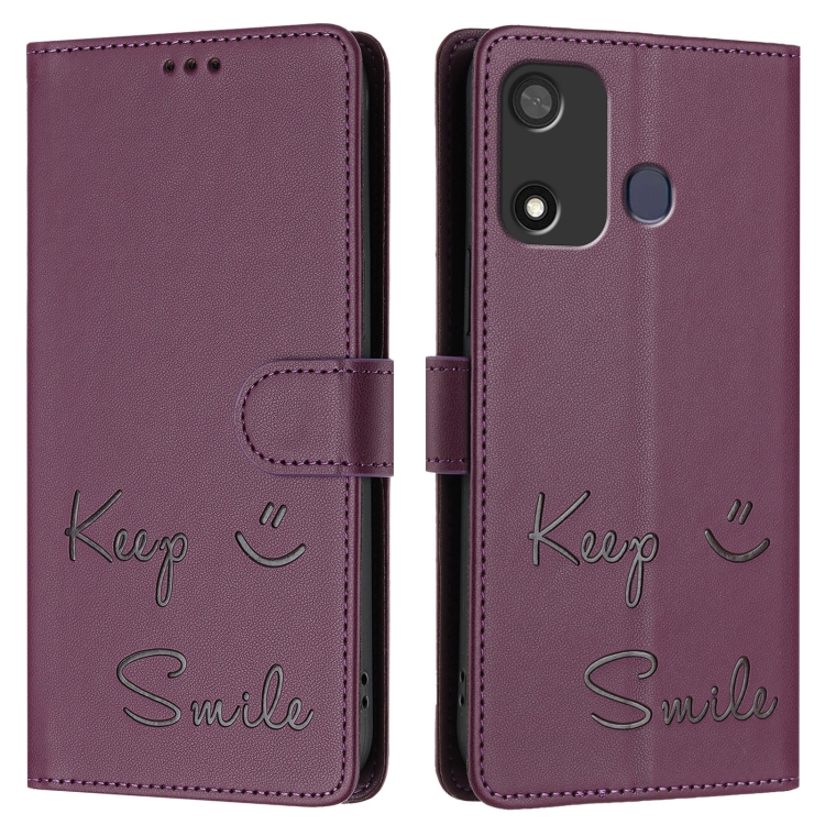 Funda de Cuero Rfid para Teléfono Itel P17/A27 con Relieve Sonriente (Violeta)