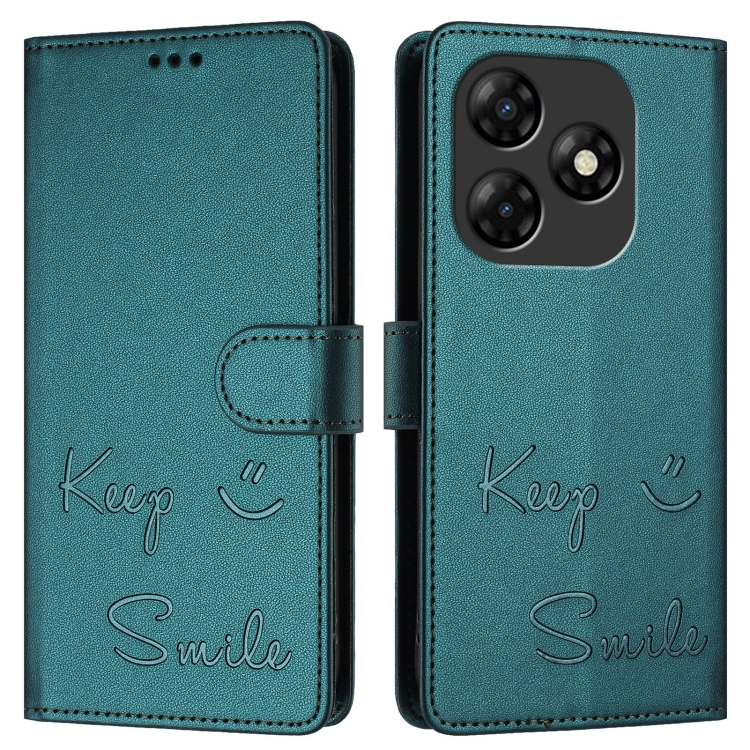 Funda de Cuero Rfid con Relieve Sonriente para Teléfono Itel P55 4G (Verde Pavo Real)