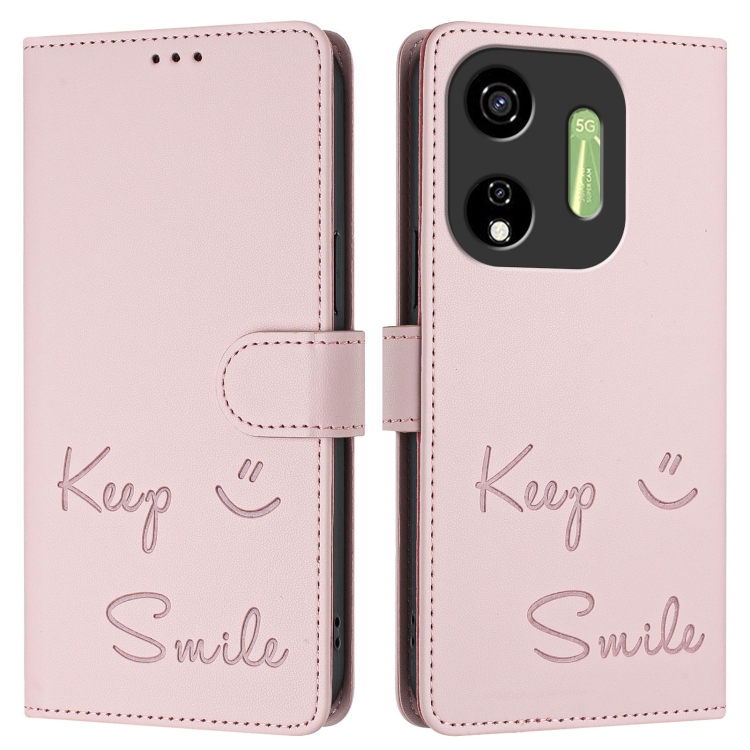 Funda de Cuero Rfid para Teléfono Itel P55 5G con Relieve Sonriente (Rosa)