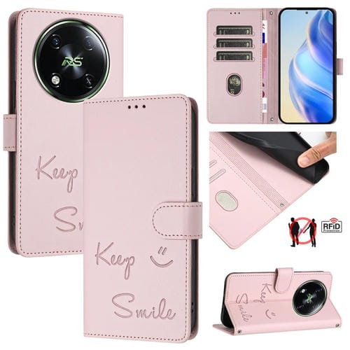 Funda de Cuero Rfid con Relieve Sonriente para Teléfono Itel Rs4 S666Ln (Rosa)