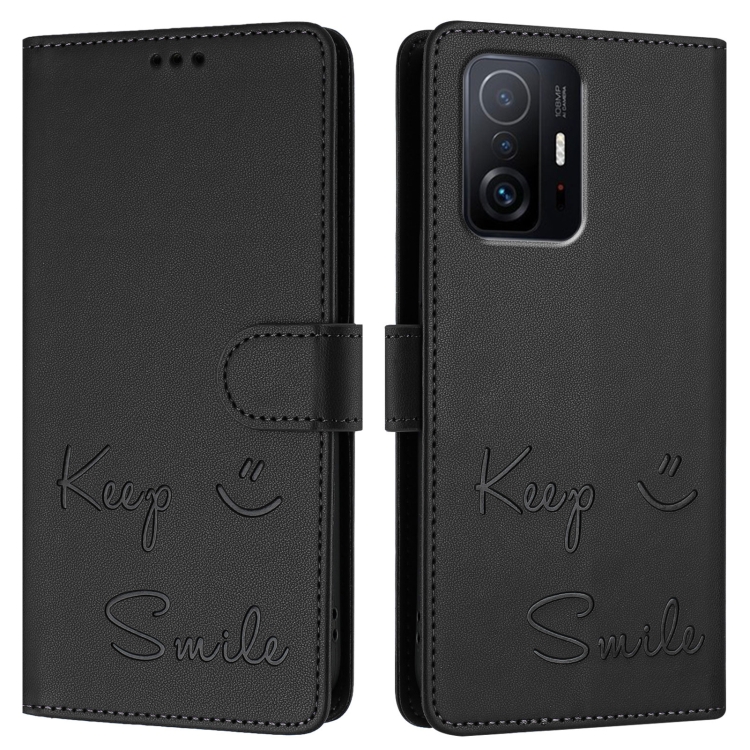 Funda de Cuero Rfid con Relieve Sonriente para Xiaomi 11T/11T Pro (Negra)
