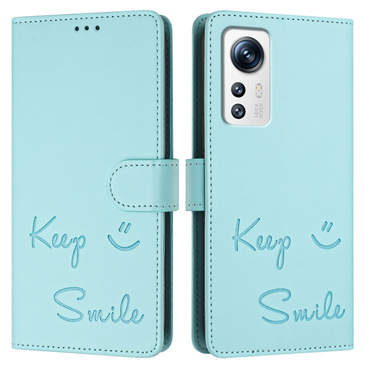Funda de Cuero Rfid con Relieve Sonriente para Xiaomi 12/12X/12S (Verde Menta)