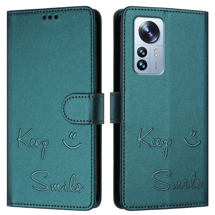 Funda de Cuero Rfid con Relieve Sonriente para Xiaomi 12 Pro/12S Pro (Verde Pavo Real)