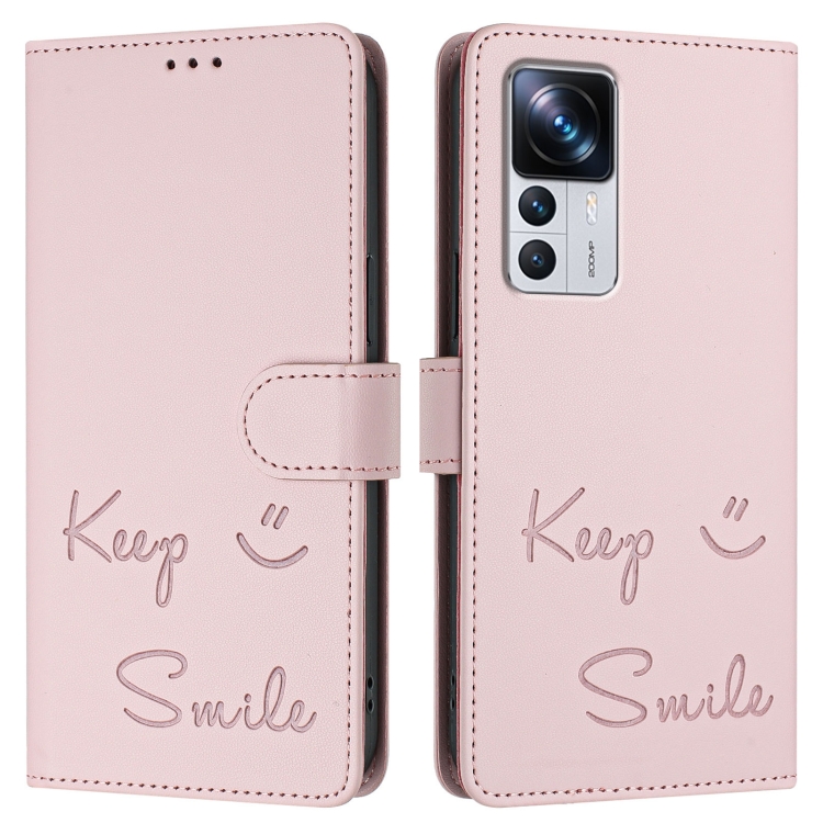 Funda de Cuero Rfid con Relieve Sonriente para Xiaomi 12T/12T Pro (Rosa)