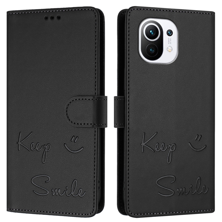 Funda de Cuero Rfid con Relieve Sonriente para Xiaomi Mi 11 (Negra)