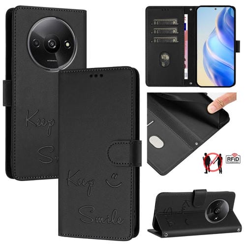 Funda de Cuero Rfid con Relieve Sonriente para Xiaomi Poco C61 (Negra)