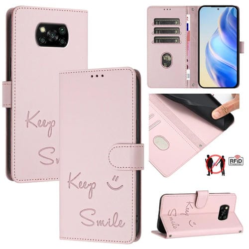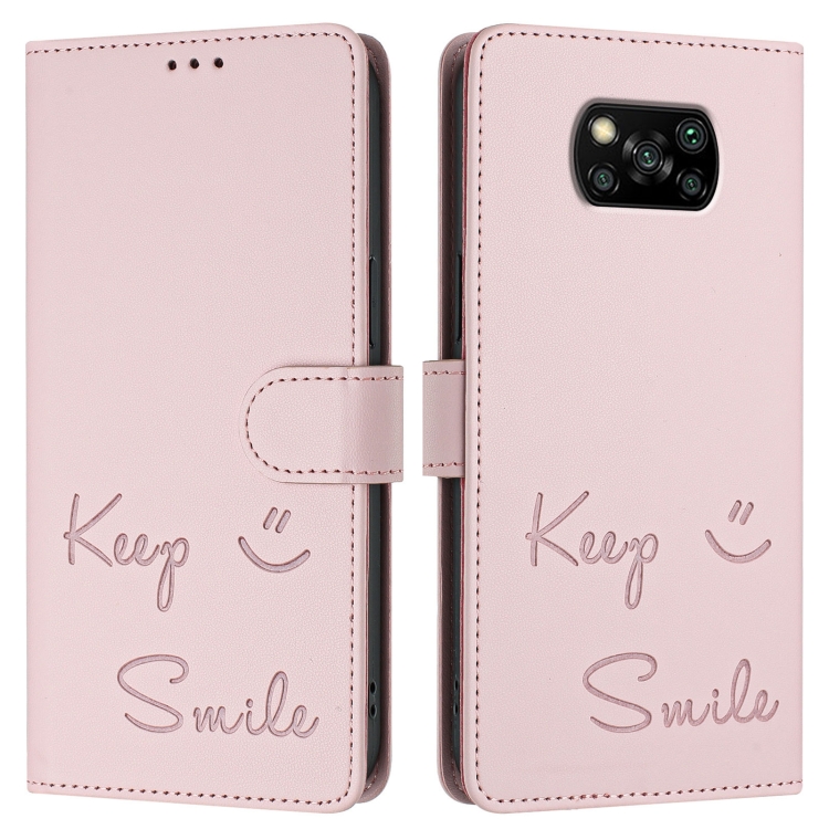 Funda de Cuero Rfid con Relieve Sonriente para Xiaomi Poco X3 / X3 Nfc / X3 Pro (Rosa)