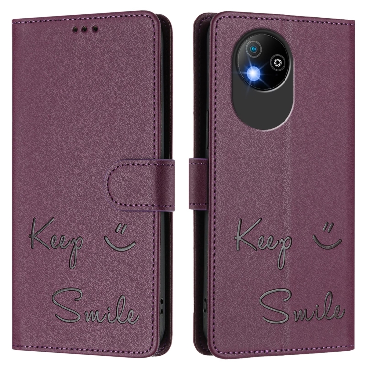 Funda de Cuero Rfid con Relieve Sonriente para ZTE Blade A35 Lite (Violeta)