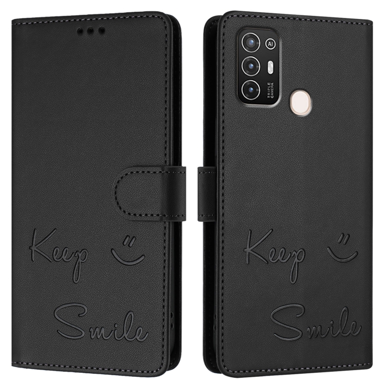 Funda de Cuero Rfid con Relieve Sonriente para ZTE Blade A52 (Negra)