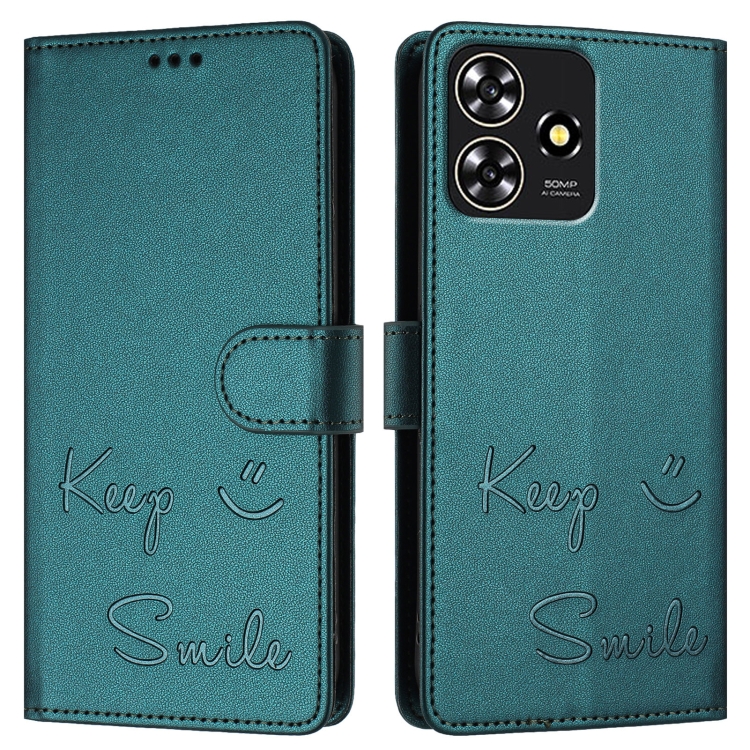 Funda de Cuero Rfid con Relieve Sonriente para ZTE Blade A73 4G (Verde Pavo Real)