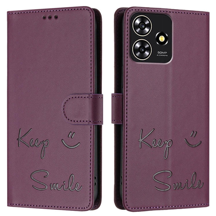 Funda de Cuero Rfid con Relieve Sonriente para ZTE Blade A73 4G (Violeta)
