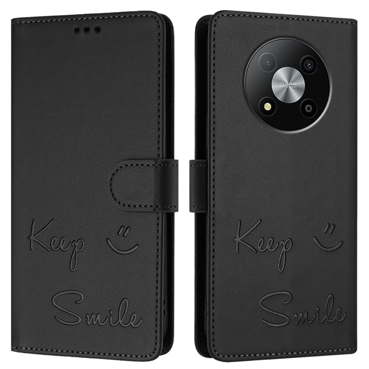 Funda de Cuero Rfid con Relieve Sonriente para ZTE Blade A73 5G (Negra)
