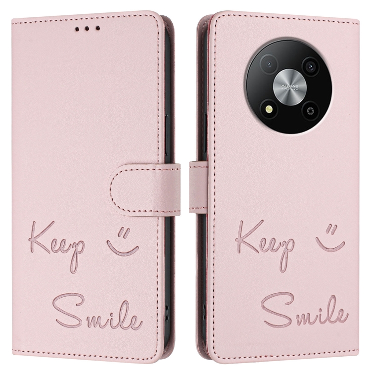 Funda de Cuero Rfid para ZTE Blade A73 5G con Relieve Sonriente (Rosa)