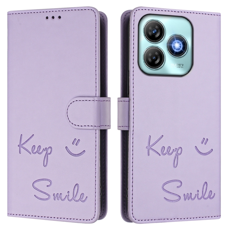 Funda de Cuero Rfid para ZTE Blade A75 4G con Relieve Sonriente (Morado Claro)