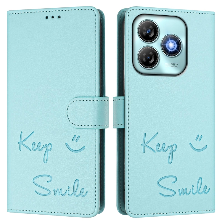 Funda de Cuero Rfid con Relieve Sonriente para ZTE Blade A75 4G (Verde Menta)