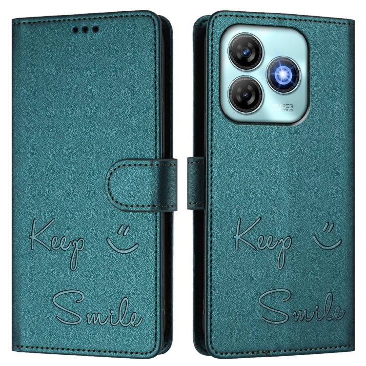 Funda de Cuero Rfid Relieve Sonriente para ZTE Blade A75 4G (Verde Pavo Real)