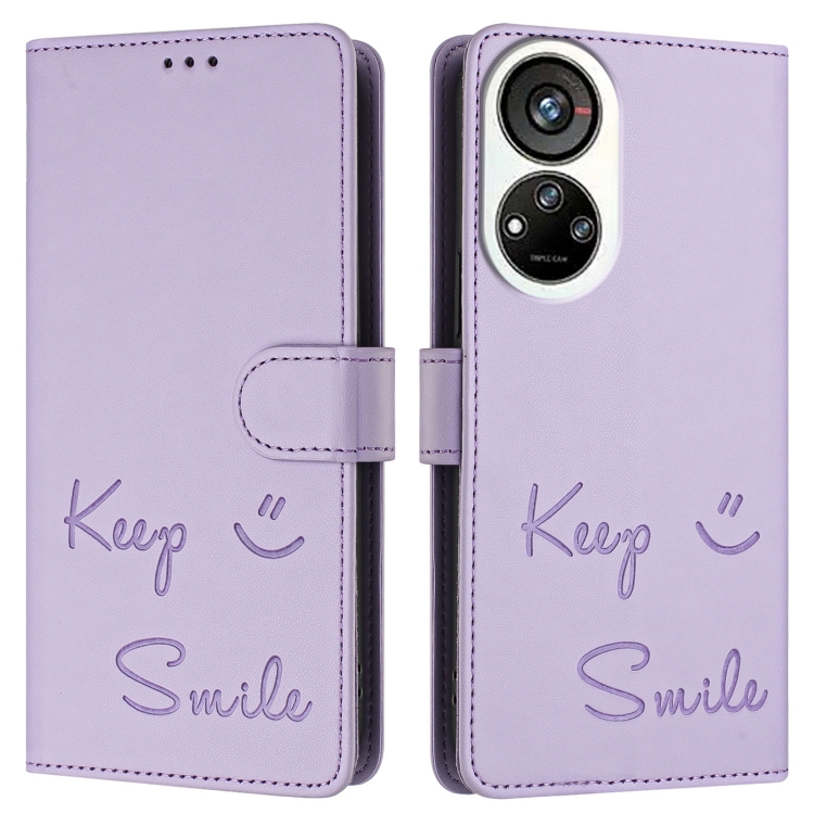 Funda de Cuero Rfid con Relieve Sonriente para ZTE Blade V40S (Morado Claro)