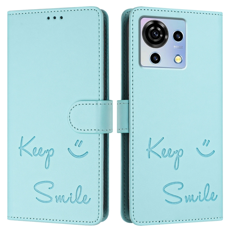 Funda de Cuero Rfid con Relieve Sonriente para ZTE Blade V50 Vita (Verde Menta)