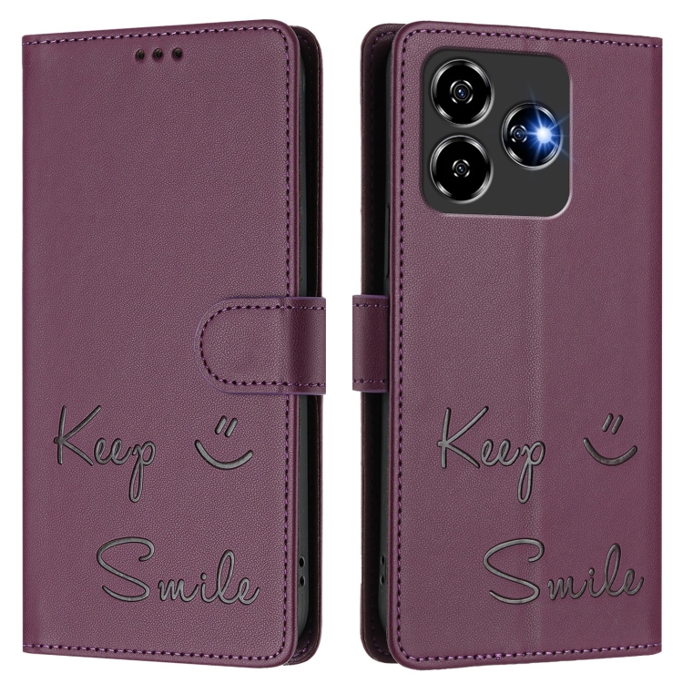 Funda de Cuero Rfid con Relieve Sonriente para ZTE Blade V60 Vita (Violeta)