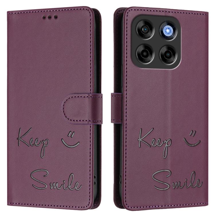 Funda de Cuero Rfid con Relieve Sonriente para ZTE Blade V70 (Violeta)