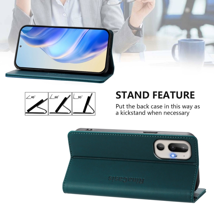 Funda de Cuero Rfid con Succión Magnética y Doble Pliegue para HTC U24 Pro Rc01 (Verde Oscuro)