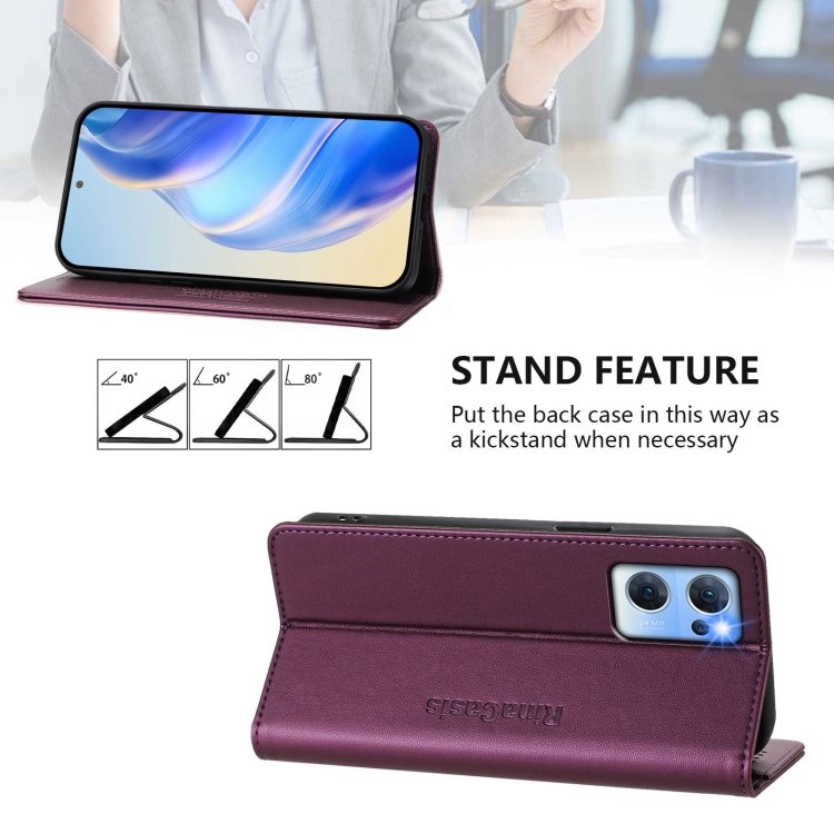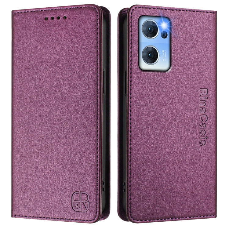Funda de Cuero Rfid con Doble Pliegue y Succión Magnética para Oppo Reno7 5G Global / Find X5 Lite Rc01 (Violeta)
