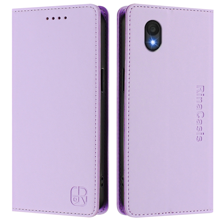 Funda Cuero Rfid Succión Magnética Doble Pliegue para TCL 201 Rc01 (Morado Claro)