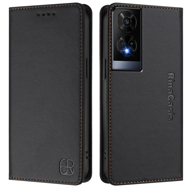 Funda de Cuero Rfid para TCL 50 Xe Rc01 con Succión Magnética y Doble Pliegue (Negra)
