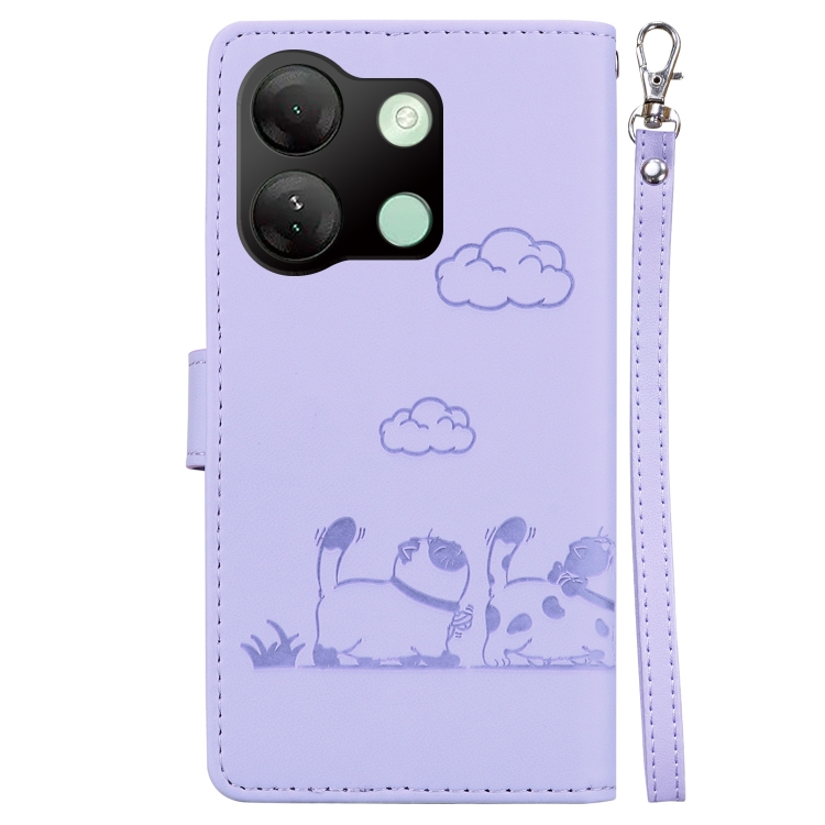 Funda de Cuero Rfid para Teléfono Infinix Smart 7 HD con Lindos Gatos (Morado)