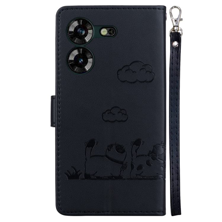 Funda de Cuero Rfid para Teléfono Tecno Pova 5 con Diseño de Gatos (Negro)