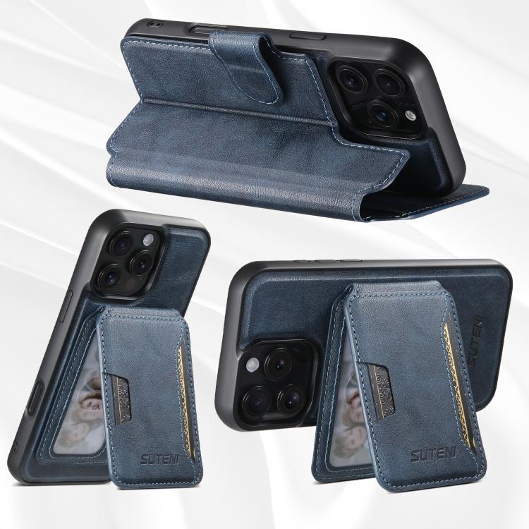 Funda de cuero Suteni Q05S3 3 en 1 con tapa vertical desmontable y función MagSafe para iPhone 16 (azul)