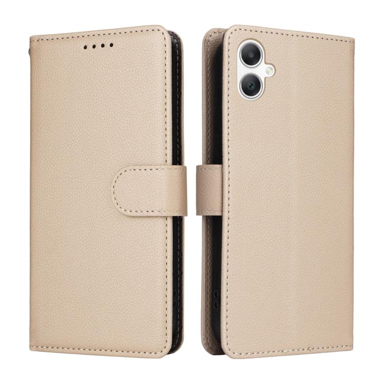 Funda de cuero tipo billetera con bloqueo RFID para Samsung Galaxy A07 4G/5G, textura Litchi, para 3 tarjetas (beige)