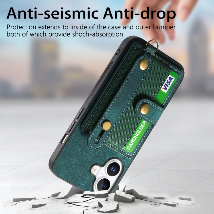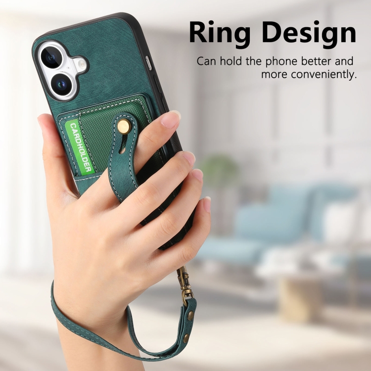 Funda de Cuero Tipo Billetera con Correa Cruzada Retro para iPhone 16 Plus (Verde)