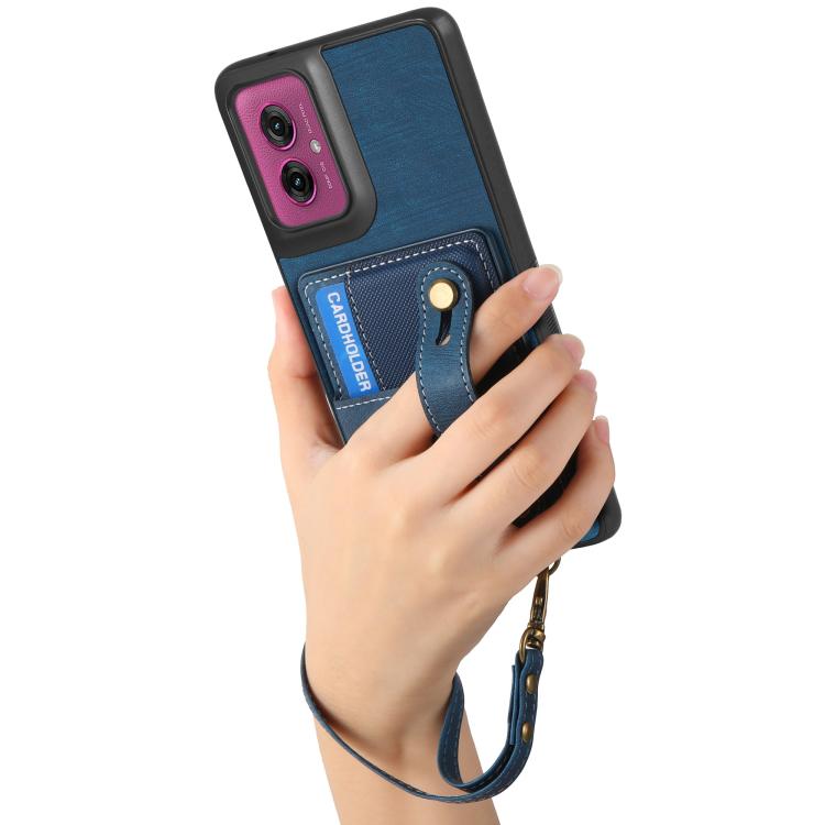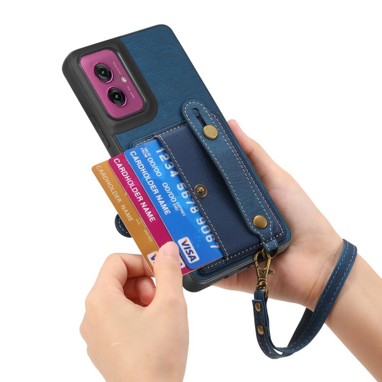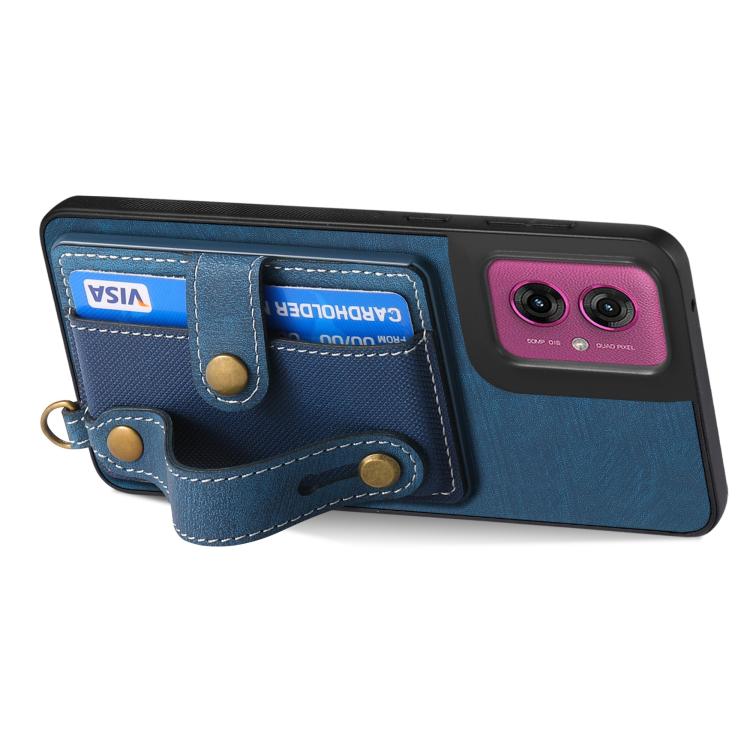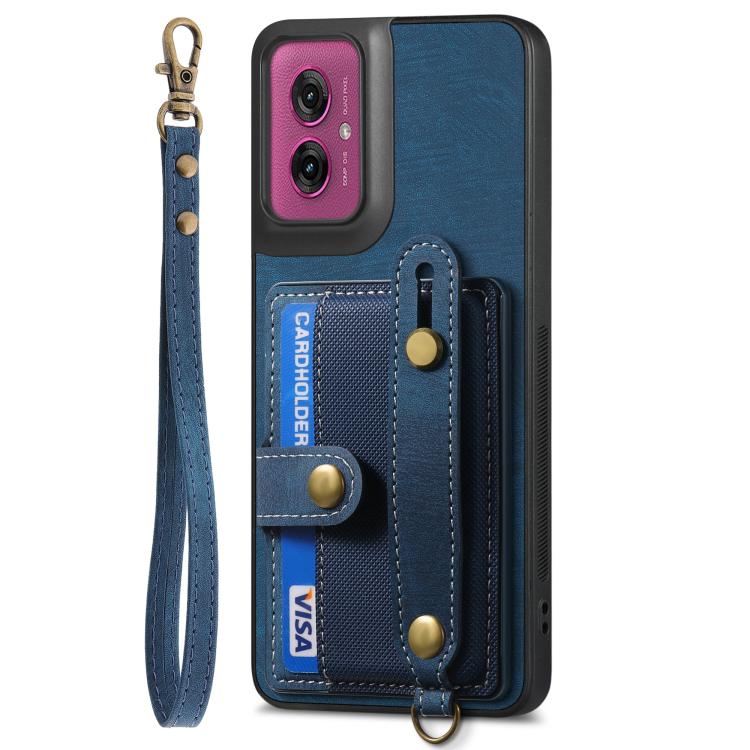 Funda de Cuero Tipo Billetera con Correa Cruzada para Motorola Moto G55 (Azul)