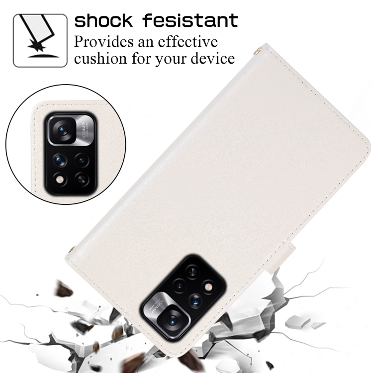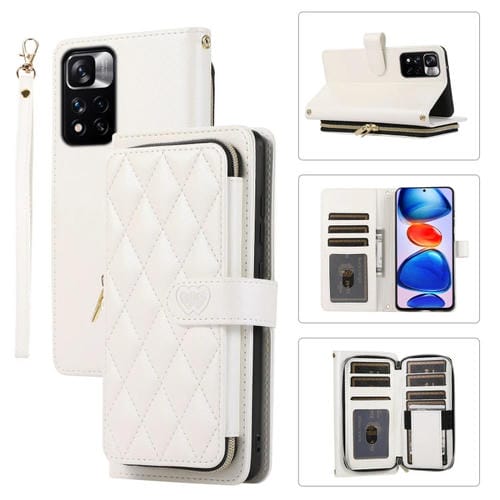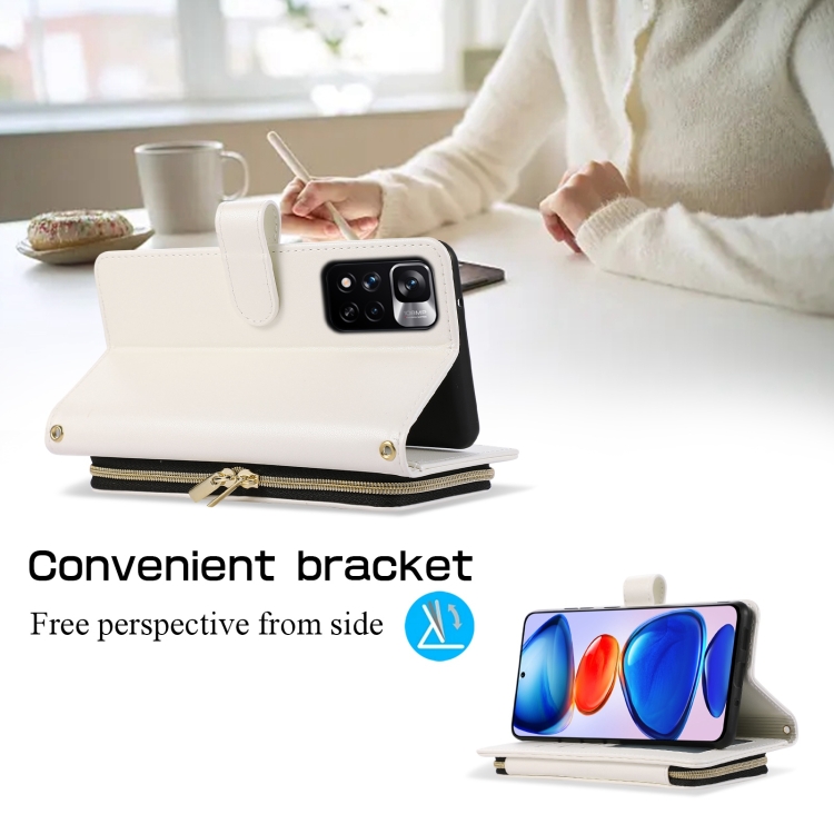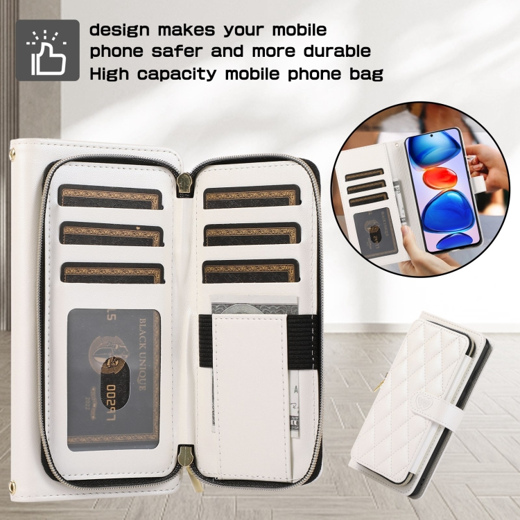 Funda de Cuero Tipo Billetera con Cremallera Completa y Diseño Rombal para Redmi Note 11 Pro (Blanca)