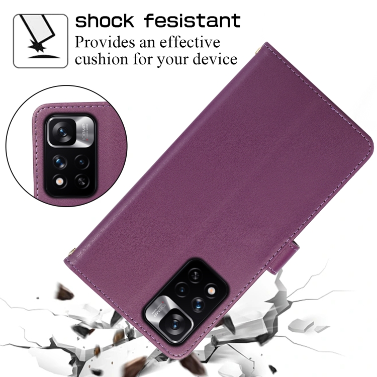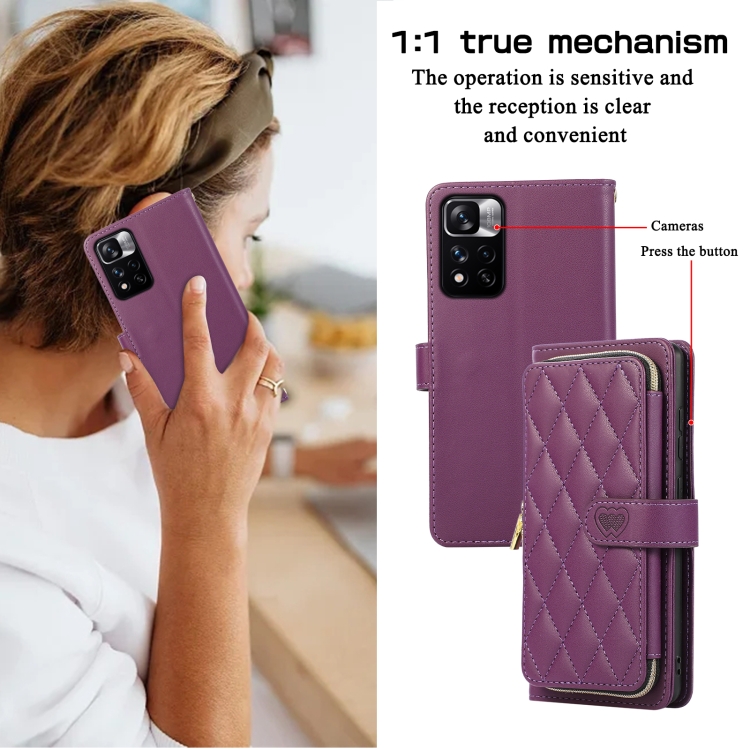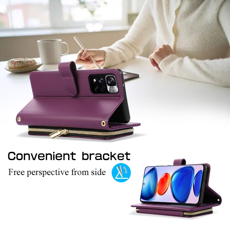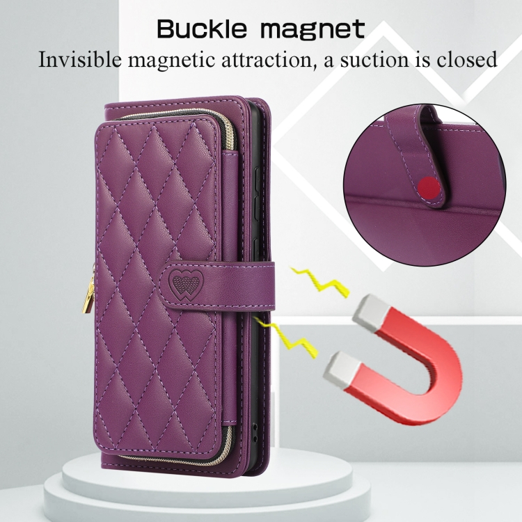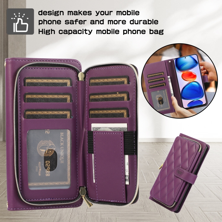 Funda de Cuero Tipo Billetera con Cremallera Completa y Diseño Rombal para Xiaomi 12T/12T Pro (Morado Oscuro)