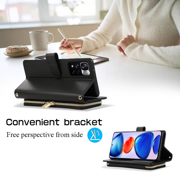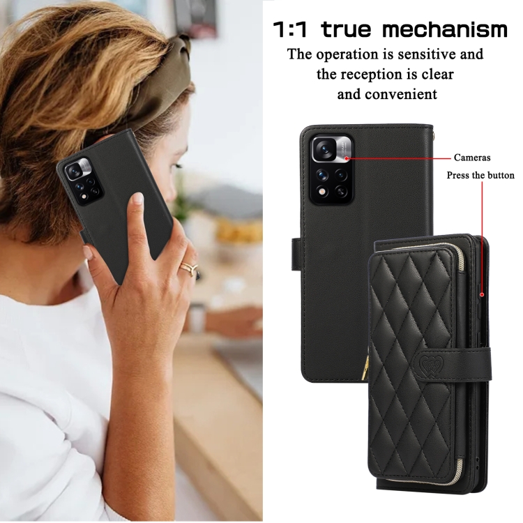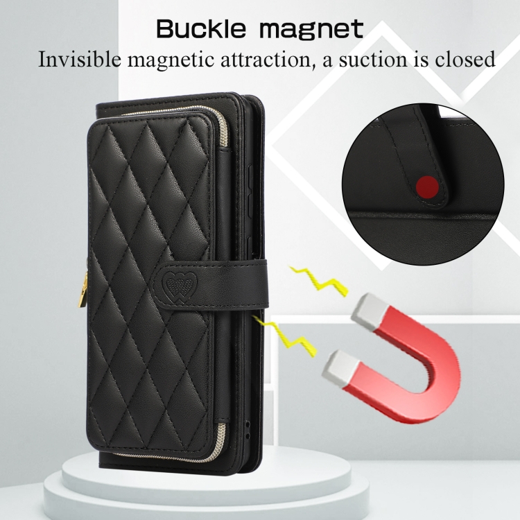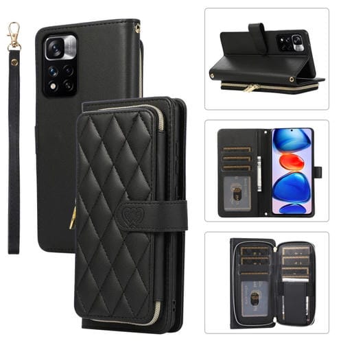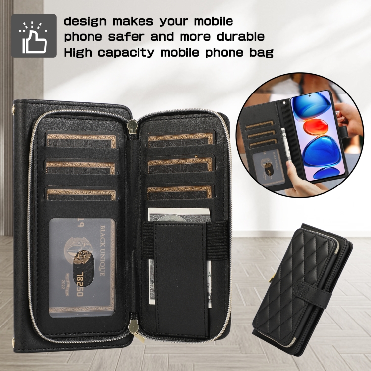 Funda de Cuero Tipo Billetera con Cremallera Completa y Diseño Rombal para Xiaomi 12T/12T Pro (Negra)