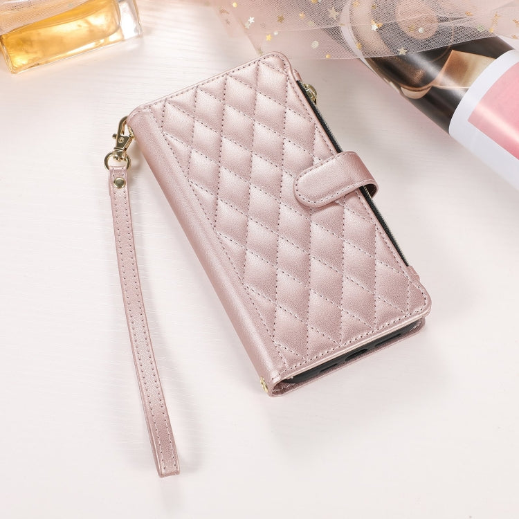Funda de Cuero Tipo Billetera con Cremallera en Forma de Rombo para iPhone 7 Plus/8 Plus (Oro Rosa)