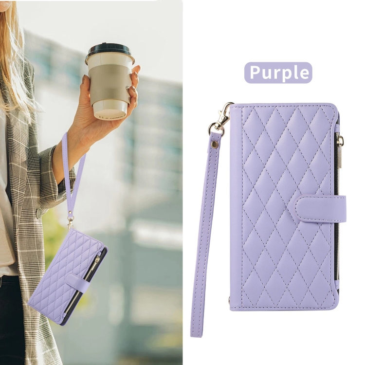 Funda de Cuero Tipo Billetera con Cremallera en Forma de Rombo para iPhone X/Xs (Morado)