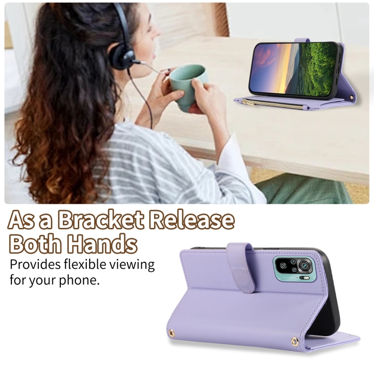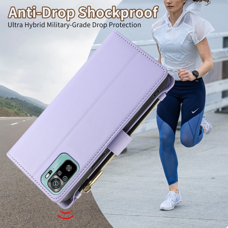 Funda de Cuero Tipo Billetera con Cremallera En Forma de Rombo para Redmi Note 10/10S (Morado)