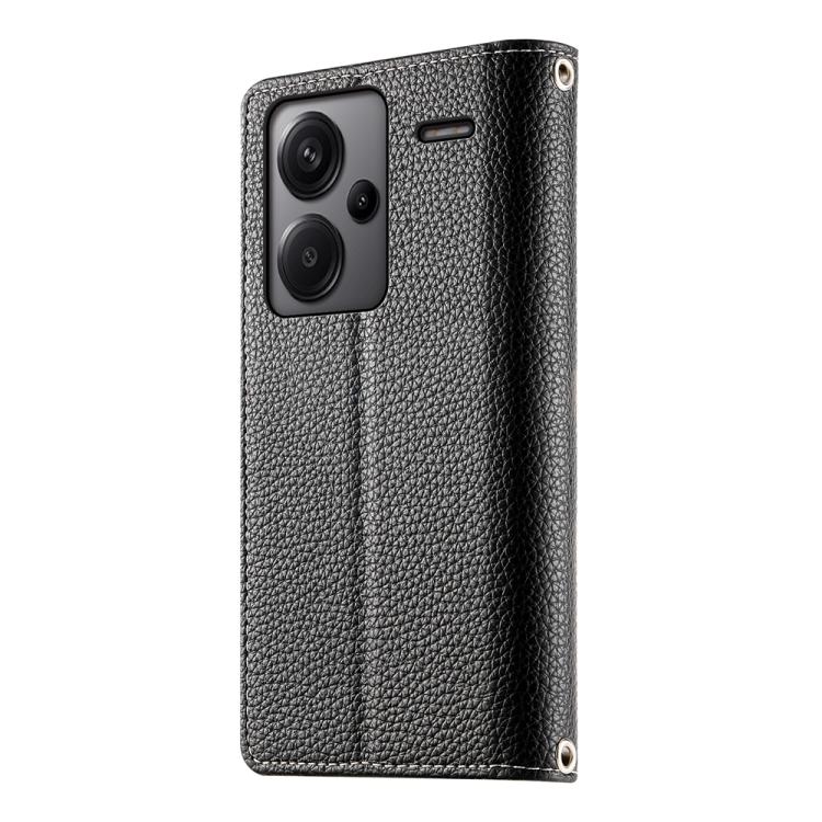 Funda de cuero tipo billetera con cremallera para Redmi Note 13 Pro+, con costuras globales y múltiples tarjetas, con correa corta (negra)