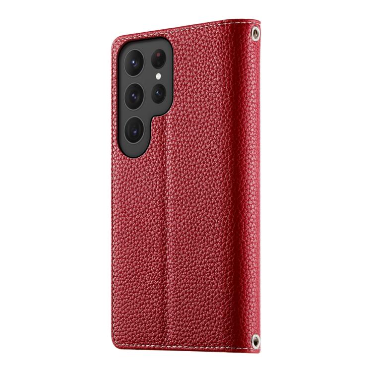 Funda de cuero tipo billetera con cremallera para Samsung Galaxy S23 Ultra 5G, con costuras, múltiples tarjetas y correa corta (roja)