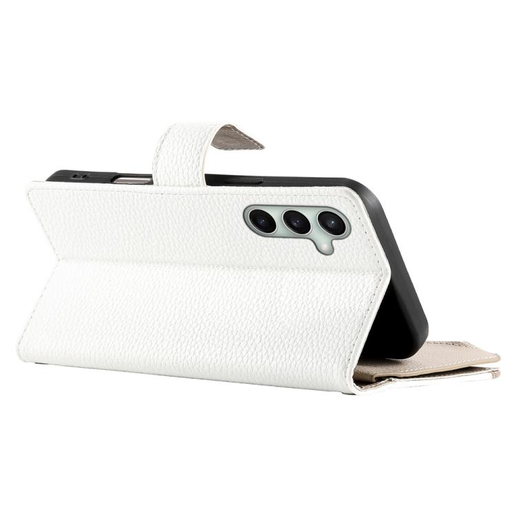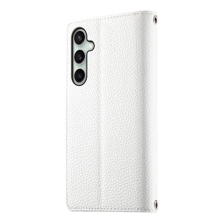 Funda de cuero tipo billetera con cremallera para Samsung Galaxy S24 FE 5G, con costuras, múltiples tarjetas y correa corta (blanca)