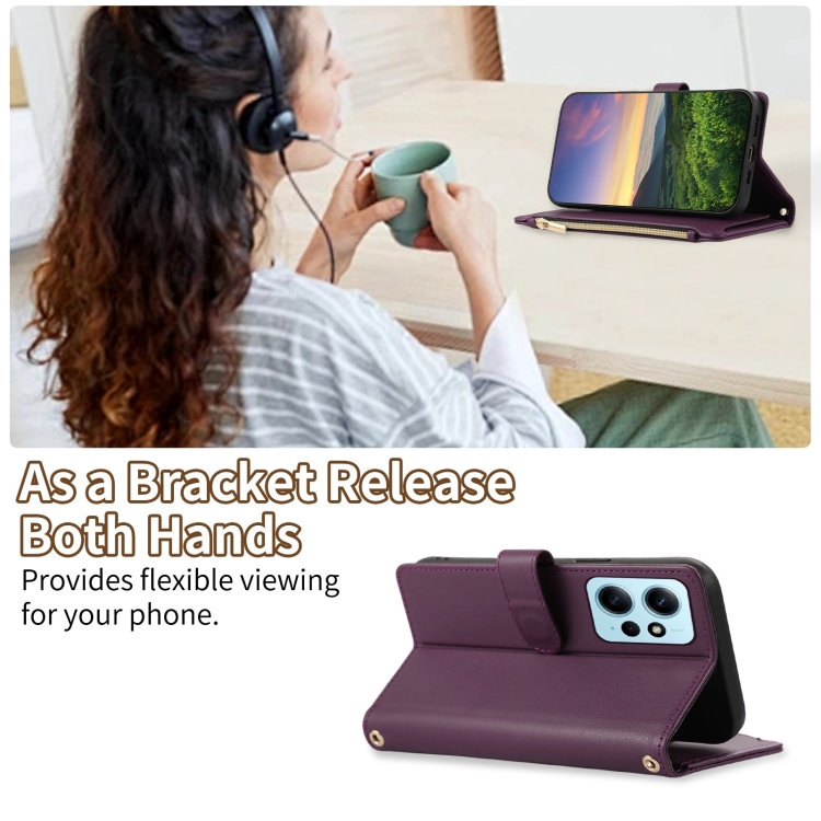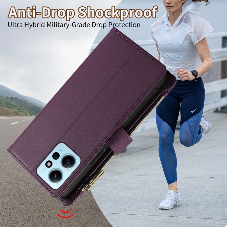 Funda de Cuero Tipo Billetera con Cremallera Rombal Global para Redmi Note 12 4G (Morado Oscuro)
